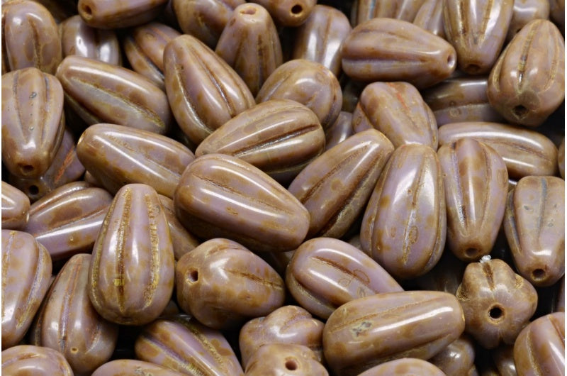 ドロップメロンビーズ、不透明アメジストトラバーチン(23030-86800)、ガラス、チェコ共和国