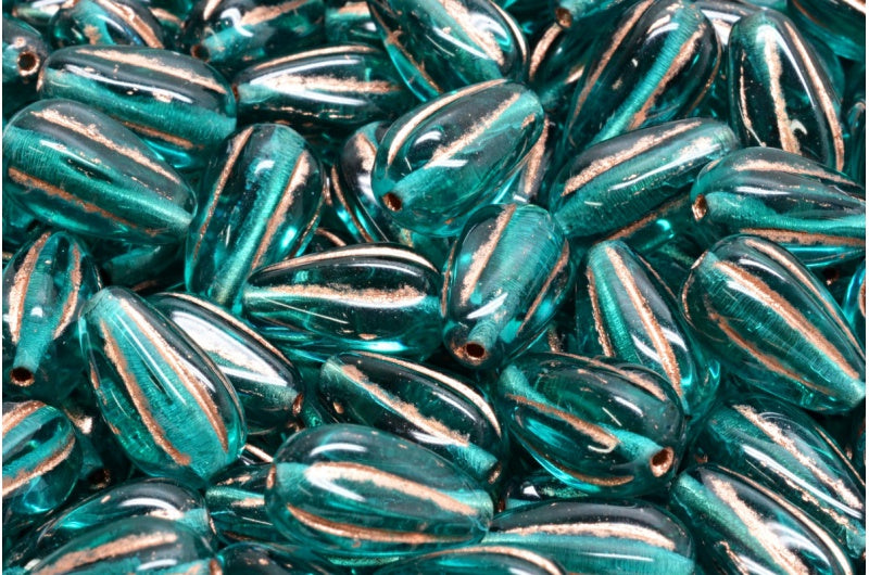 ドロップメロンビーズ、透明アクア銅線入り(60220-54318)、ガラス、チェコ共和国