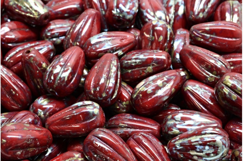 ドロップメロンビーズ、不透明レッドピカソ(93220-43400)、ガラス、チェコ共和国
