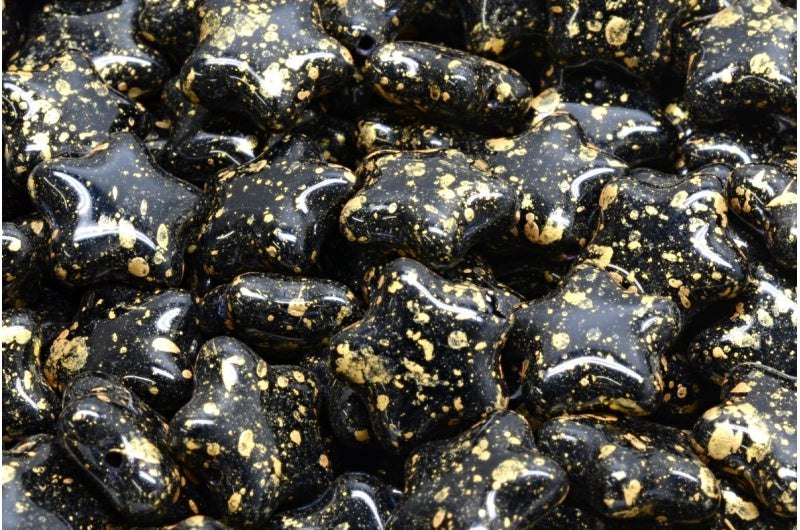 フラットスタービーズ、ブラックゴールドスプラッシュ(23980-94401)、ガラス、チェコ共和国