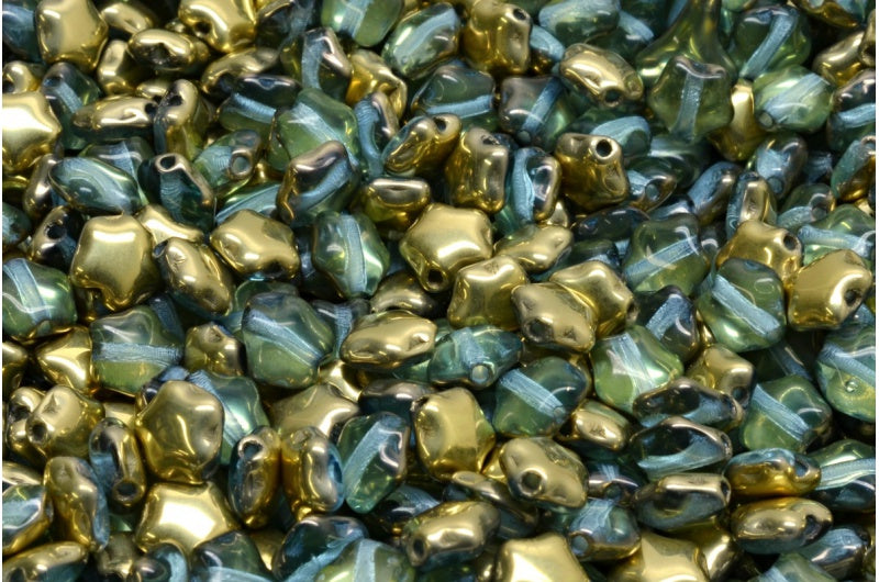 フラットスタービーズ、透明アクアゴールド(60000-26441)、ガラス、チェコ共和国