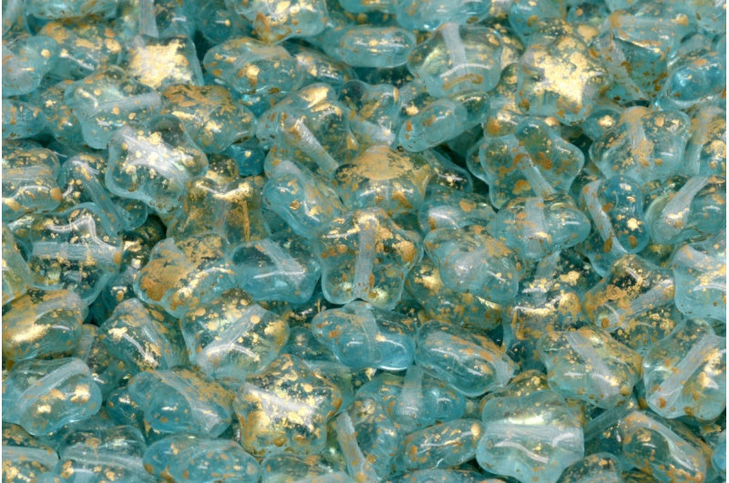 フラットスタービーズ、透明アクアゴールドスプラッシュ(60000-94401)、ガラス、チェコ共和国