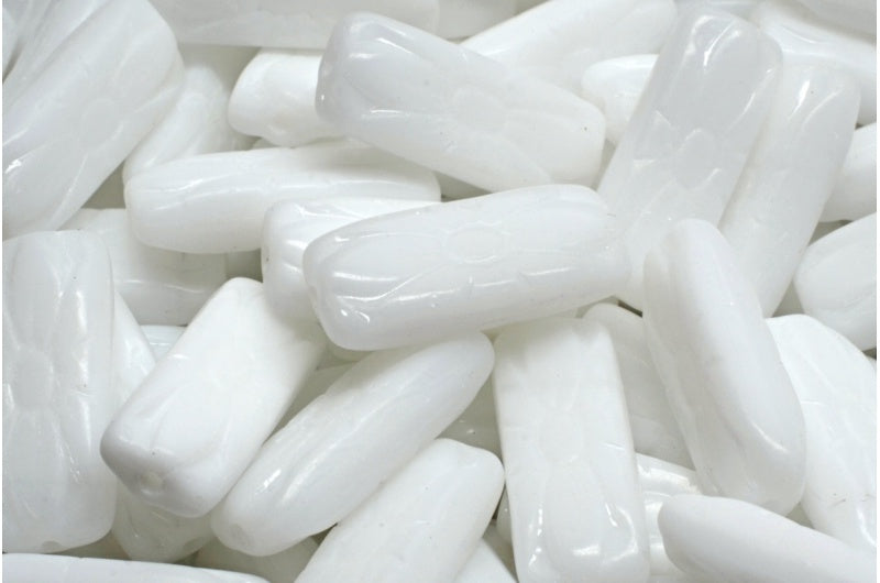 フラワーレクタングルビーズ、ホワイト(02010)、ガラス、チェコ共和国