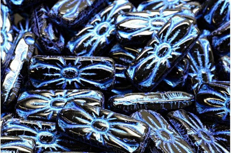 フラワーレクタングルビーズ、ブラック 43809 (23980-43809)、ガラス、チェコ共和国