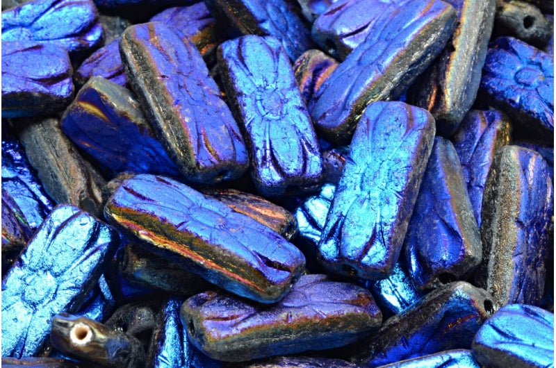 フラワーレクタングルビーズ、ブラックエッチング 22203 (23980-etch-22203)、ガラス、チェコ共和国