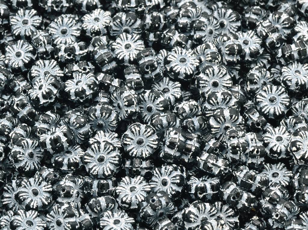 フラワービーズ、黒白ライン入り(23980-46401)、ガラス、チェコ共和国