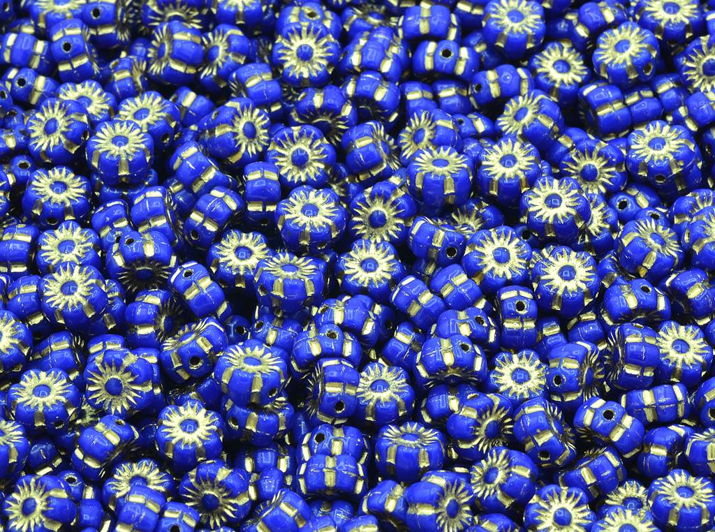 フラワービーズ、不透明ブルー、金線入り(33070-54202)、ガラス、チェコ共和国