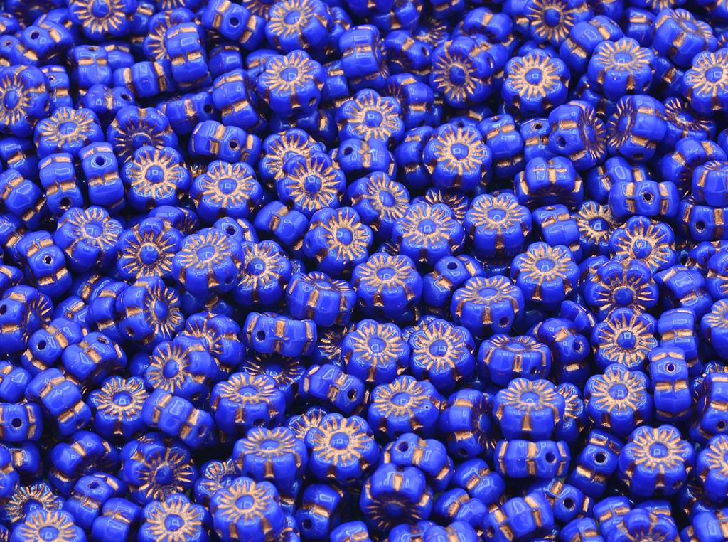フラワービーズ、不透明ブルー銅線入り(33070-54307)、ガラス、チェコ共和国
