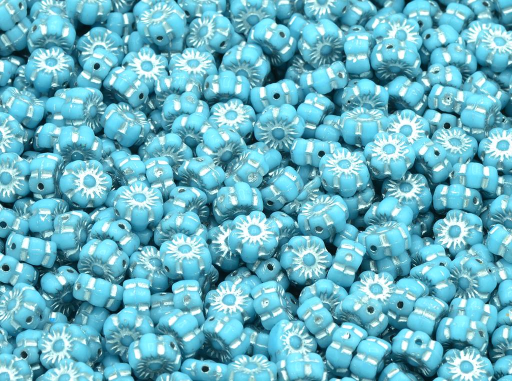 フラワービーズ、ブルーシルバーライン(63020-54201)、ガラス、チェコ共和国