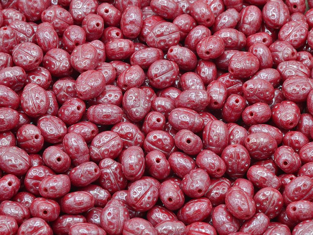 てんとう虫型昆虫プレスビーズ、不透明レッドヘマタイト(93200-14400)、ガラス、チェコ共和国