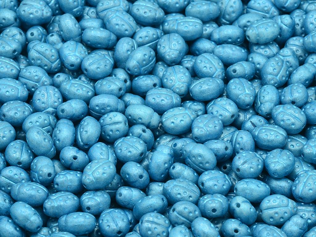 テントウムシビーズ、チョークホワイトラスターブルーフルコーティングブルーライン(03000-14464-54323)、ガラス、チェコ共和国