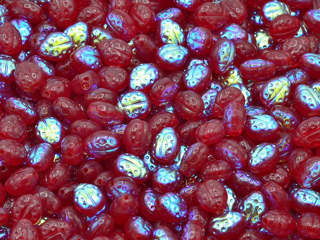 テントウムシビーズ、ルビーレッドAb(90080-28701)、ガラス、チェコ共和国