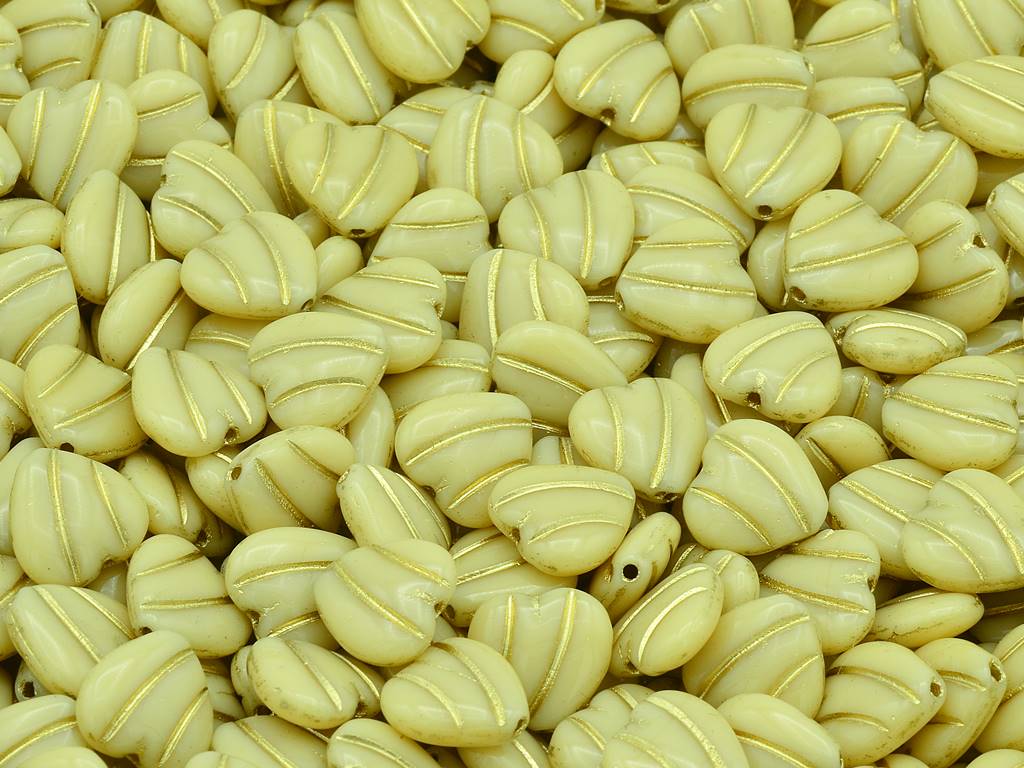 ハート型ラインビーズ、ベージュゴールドライン(13020-54202)、ガラス、チェコ共和国