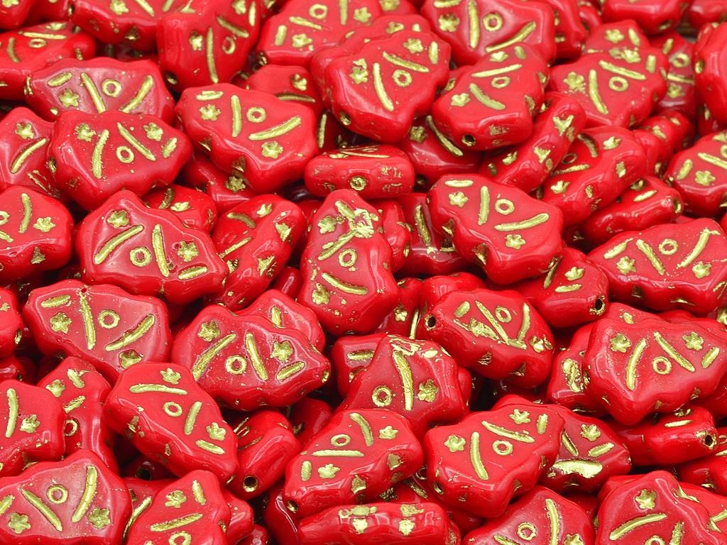 クリスマスツリービーズ、不透明レッドゴールドライン(93200-54202)、ガラス、チェコ共和国