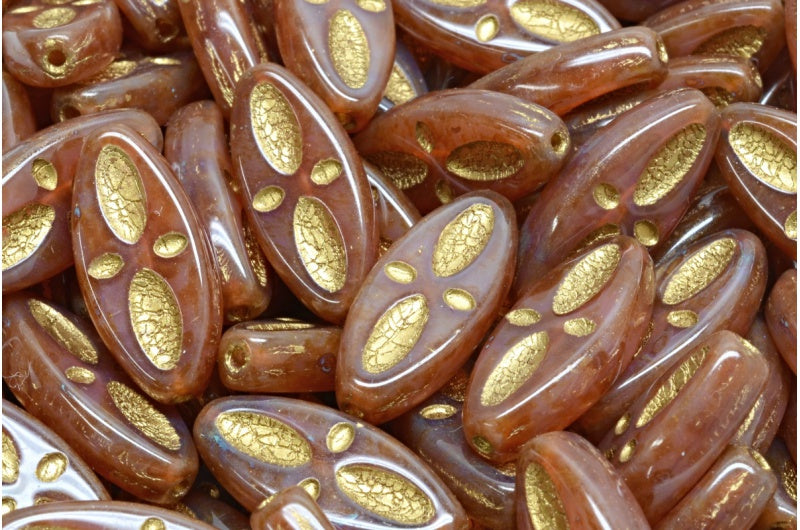 シップアイオーバルビーズ、オパールピンクトラバーチンゴールドライニング(71010-86800-54302)、ガラス、チェコ共和国