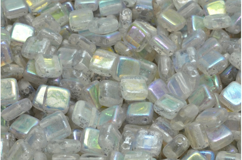 2穴プレスタイルビーズ、クリスタルABシルバースプラッシュ(00030-28701-94400)、ガラス、チェコ共和国
