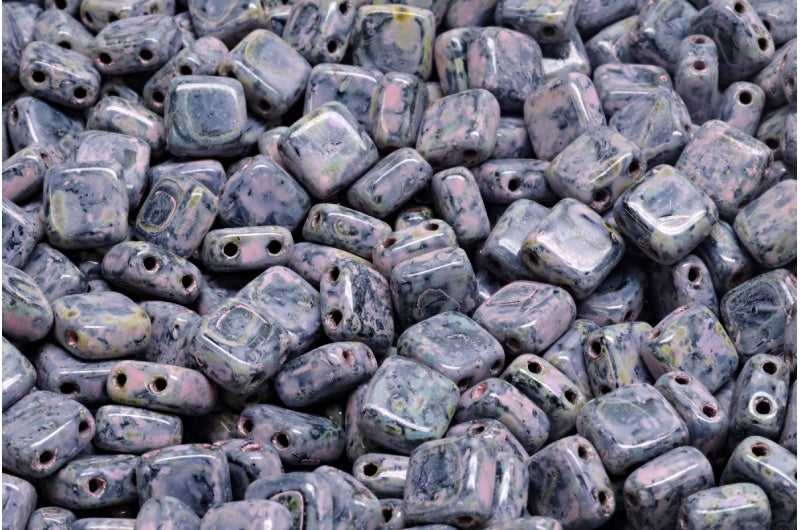 2穴プレスタイルビーズ、ブラックトラバーチンウォームパープルスポット(23980-86800-33304)、ガラス、チェコ共和国