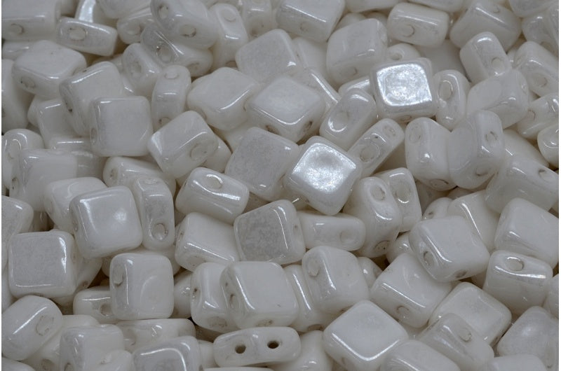 フラットシルキービーズ - 2穴、ホワイトヘマタイト(02010-14400)、ガラス、チェコ共和国