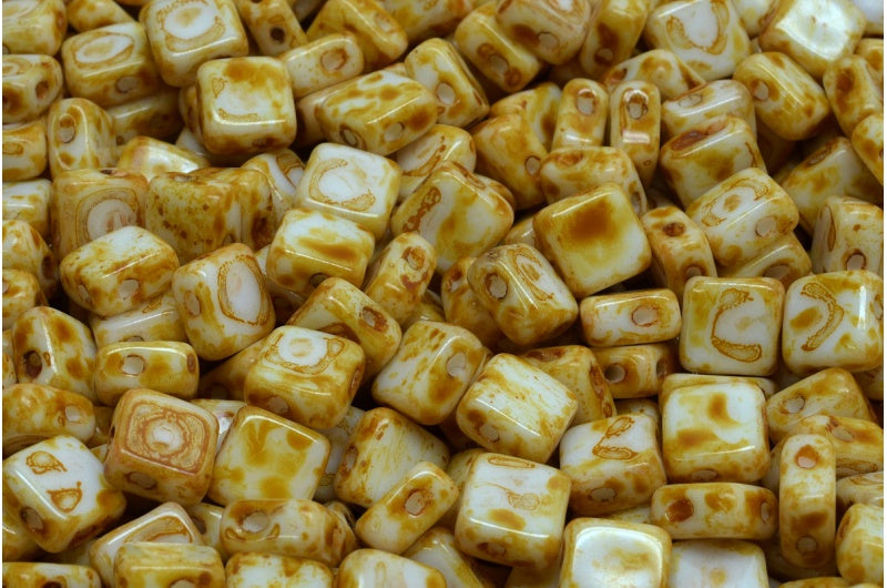 フラットシルキービーズ - 2穴、ホワイトトラバーチン(02010-86800)、ガラス、チェコ共和国