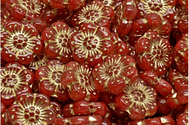 ボヘミアンフラワービーズ、R0932 ゴールドライン(R0932-54302)、ガラス、チェコ共和国