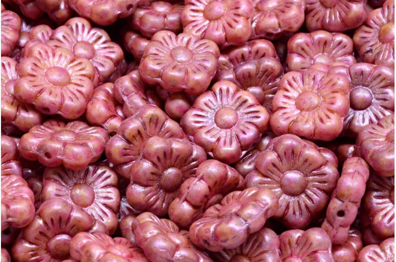スクエアフラワービーズ、ホワイトローズラスタースポット(02010-65327)、ガラス、チェコ共和国