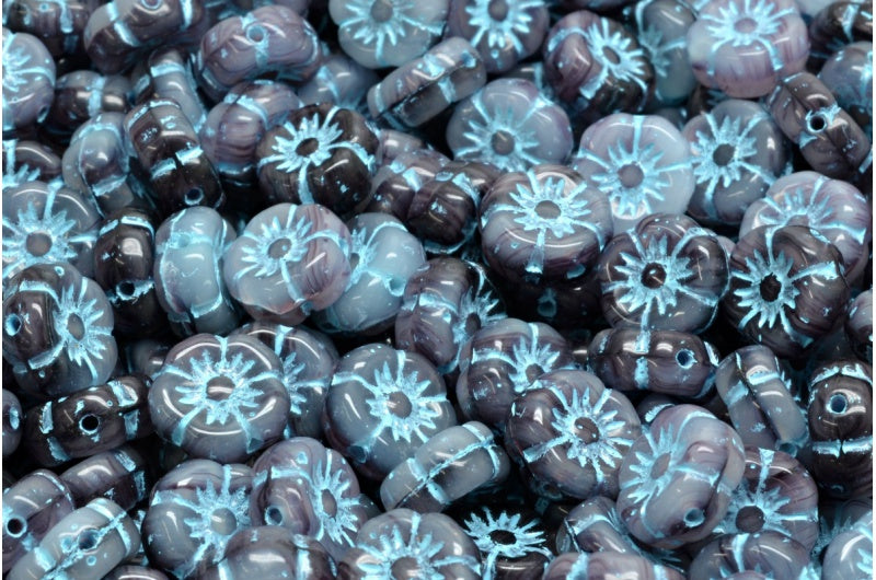 マロウフラワー、白黒ライトブルーのライン入り(02010-23980-54308)、ガラス、チェコ共和国