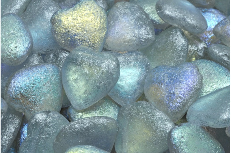 サイドホール付きハートビーズ、クリスタルエッチングABシルバーグレー(00030-etch-28701-34301)、ガラス、チェコ共和国