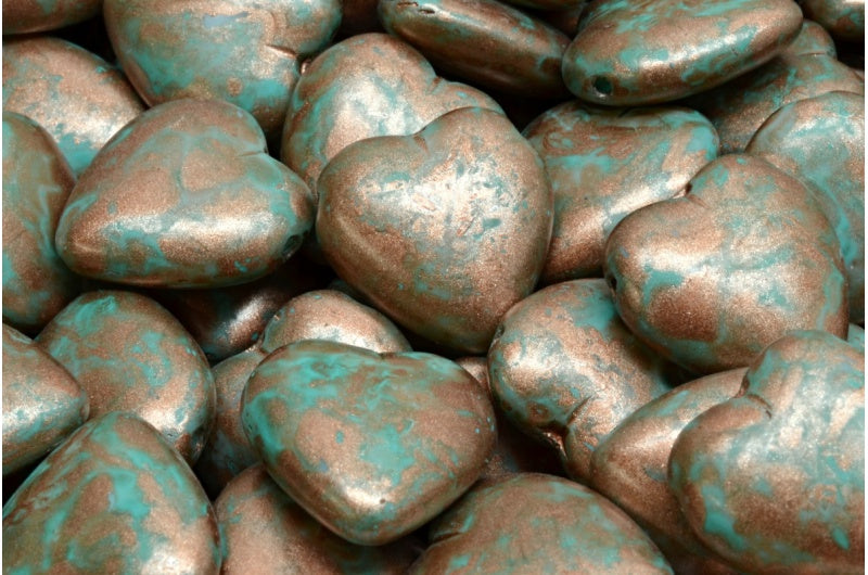 ハートビーズ(サイドホール付き)、ホワイト 84309 コッパースプラッシュ(02010-84309-86750)、ガラス、チェコ共和国