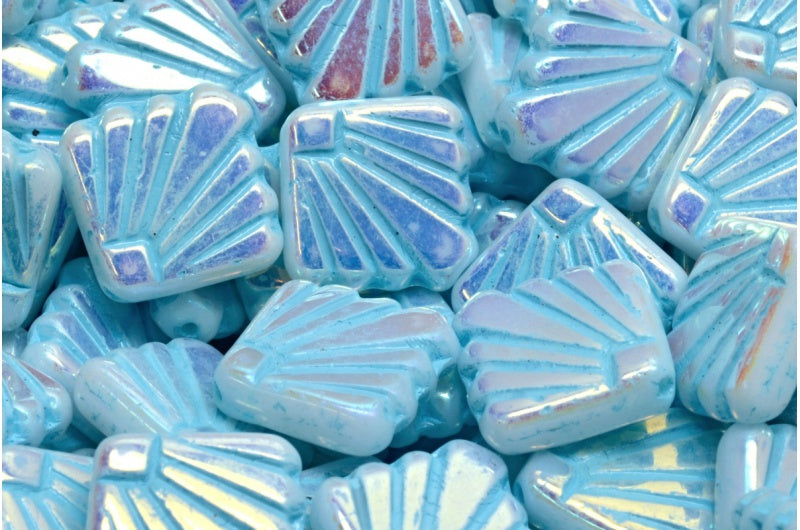 ディアファンビーズ、ホワイトアブフル(2Xサイド)ライトブルーライン(02010-28703-54308)、ガラス、チェコ共和国