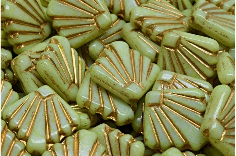 ディアファンビーズ、ホワイトゴールドライン入りライトグリーン(02010-54302-34310)、ガラス、チェコ共和国