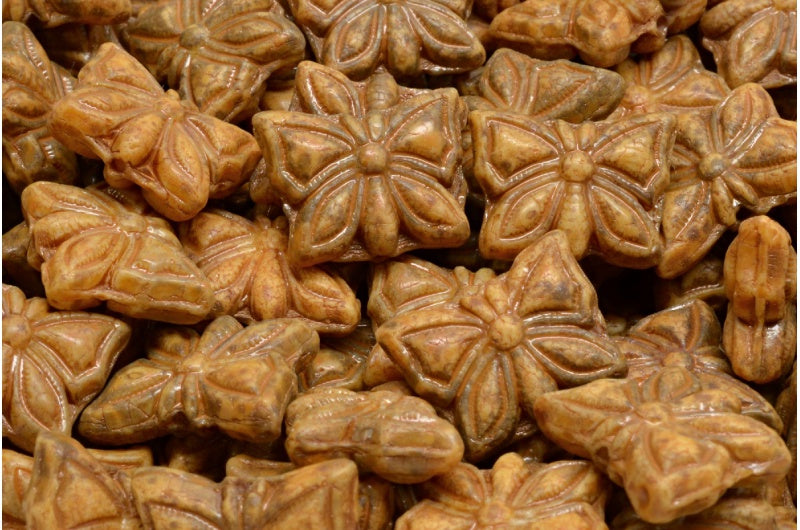 バタフライビーズ、ホワイトトラバーチンオレンジスポット(02010-86800-33302)、ガラス、チェコ共和国