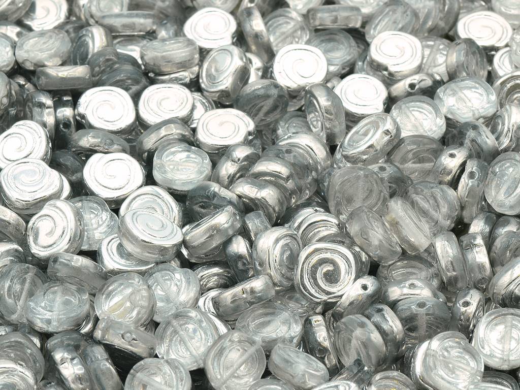 スパイラルスネイルプレスビーズ、クリスタルクリスタルシルバーハーフコーティング(00030-27001)、ガラス、チェコ共和国
