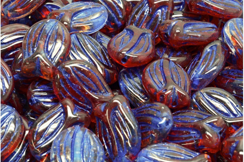 チューリップビーズ、R0098 ブルーライン(R0098-54309)、ガラス、チェコ共和国