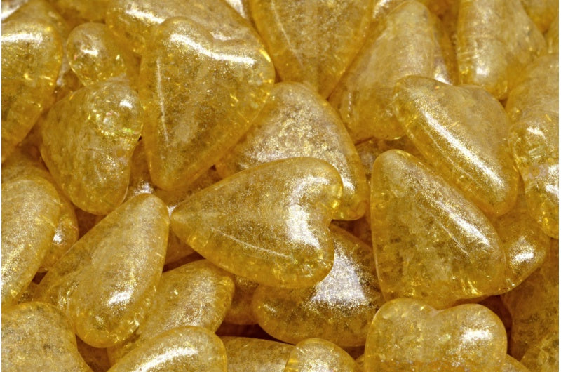 細長いハート型ビーズ、クリスタルクラックライトイエロー(00030-85500-34302)、ガラス、チェコ共和国