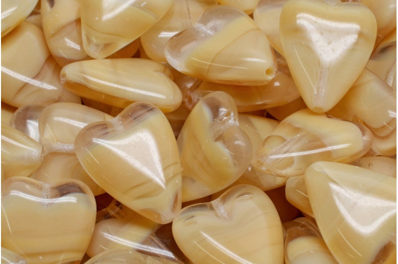 細長いハートビーズ、ベージュシルキー(16017)、ガラス、チェコ共和国