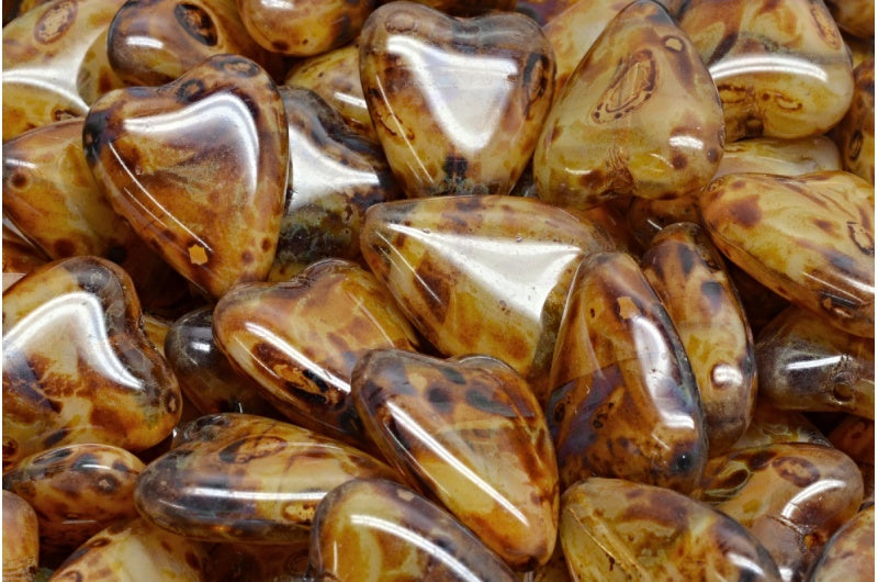 細長いハートビーズ、ベージュシルキートラバーチン(16017-86800)、ガラス、チェコ共和国