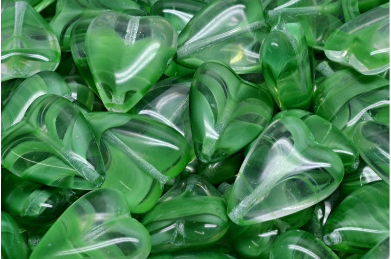 細長いハートビーズ、マラカイトグリーン(26507)、ガラス、チェコ共和国