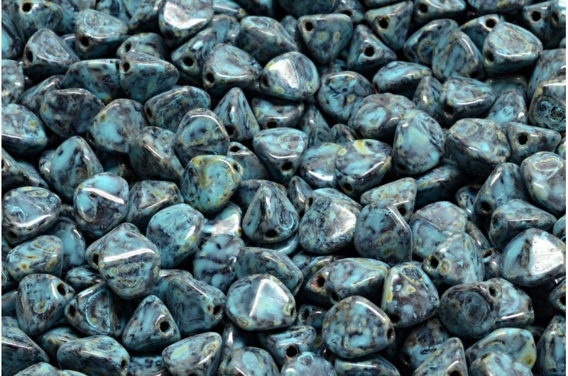 ピンチビーズ、ブラックトラバーチンターコイズスポット(23980-86800-33309)、ガラス、チェコ共和国
