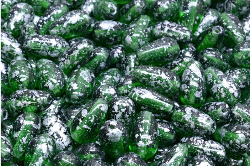 ドロップビーズ、透明グリーンシルバースプラッシュ(50560-94400)、ガラス、チェコ共和国
