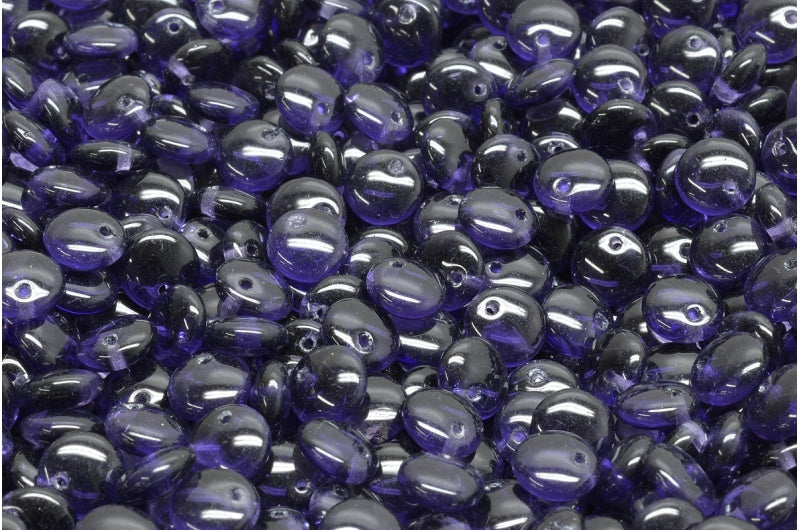 レンズ豆ビーズ、透明ライトアメジスト(20500)、ガラス、チェコ共和国