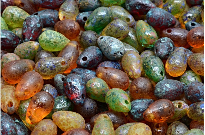 ドロップビーズ、1ミックスカラーエッチングトラバーチン(00001-MIx-ETCH-86800)、ガラス、チェコ共和国