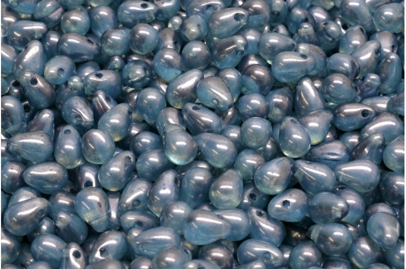 ドロップビーズ、クリスタルオパールホワイトラスターブルーフルコーティング(00030-01000-14464)、ガラス、チェコ共和国