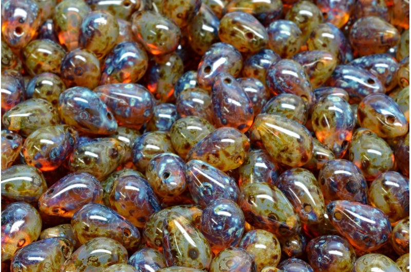 ドロップビーズ、オパールホワイト 70600 トラバーチン (01000-70600-86800)、ガラス、チェコ共和国