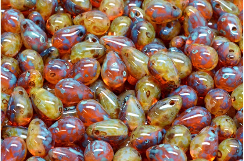 ドロップビーズ、オパールホワイト透明イエロートラバーチン(01000-80020-86800)、ガラス、チェコ共和国