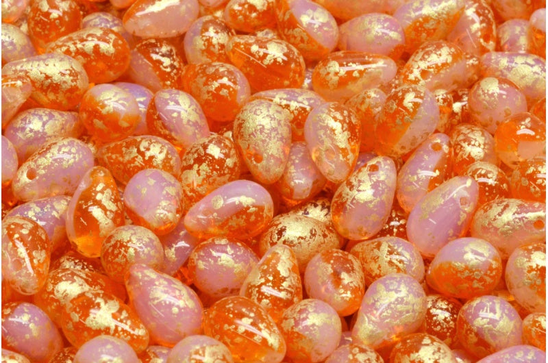 ドロップビーズ、オパールホワイト透明オレンジゴールドスプラッシュ(01000-90020-94401)、ガラス、チェコ共和国