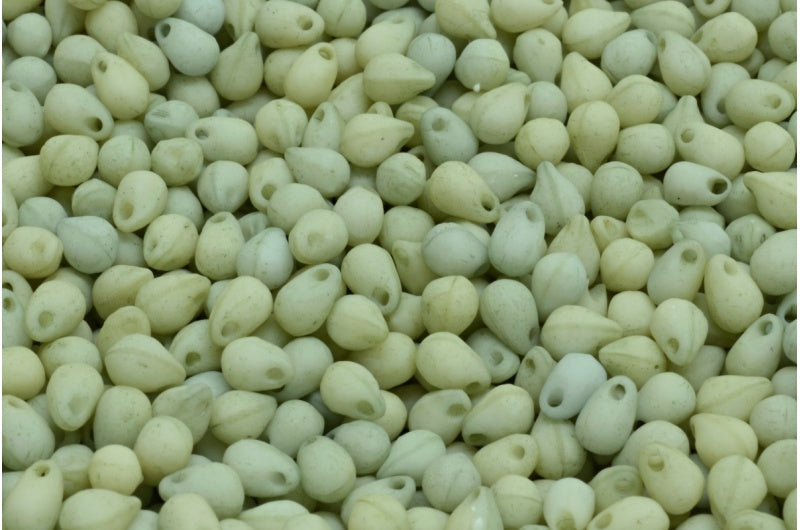 ドロップビーズ、ホワイトエッチングラスターグリーンフルコーティング(02010-ETCH-14457)、ガラス、チェコ共和国