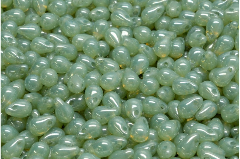 ティアドロップビーズ、オパールホワイトラスターグリーンフルコーティング(01000-14457)、ガラス、チェコ共和国