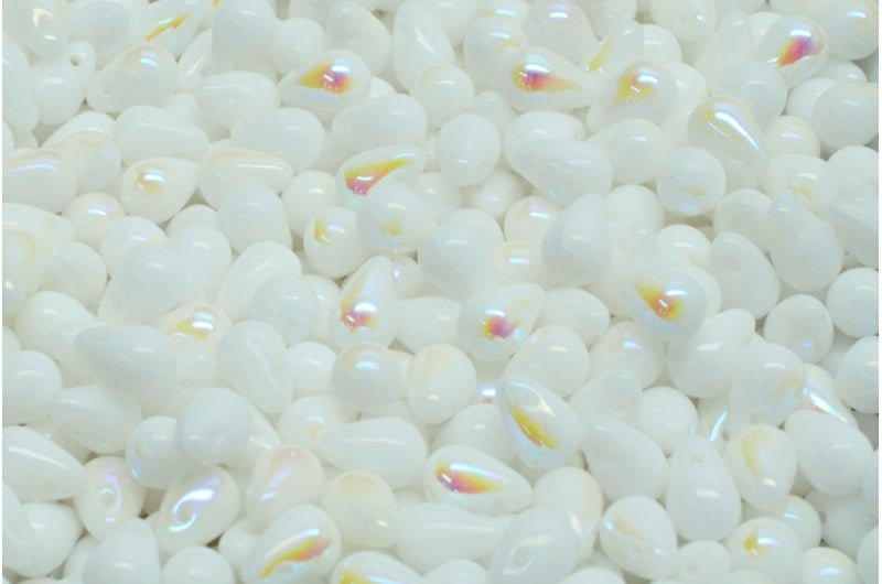ドロップビーズ、ホワイトAb(02010-28701)、ガラス、チェコ共和国