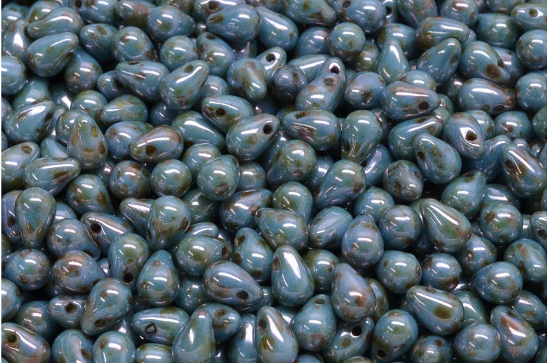 ドロップビーズ、ホワイトステイン、ラスターブルー(02010-65431)、ガラス、チェコ共和国
