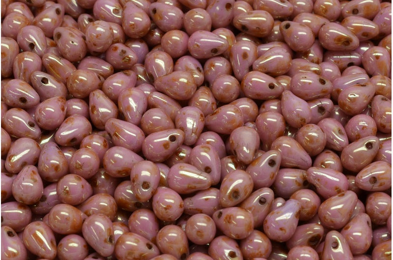 ドロップビーズ、ホワイトステイン、ラスターレッド(02010-65491)、ガラス、チェコ共和国